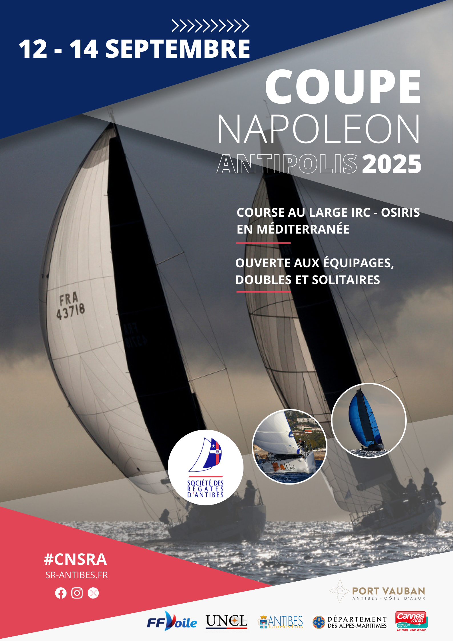 La Société des Régates d’Antibes organise en partenariat avec le Port Vauban l’Antipolis / Coupe Napoléon, une belle régate ouverte aux équipages et aux solitaires. Son parcours consiste, au départ d’Antibes, à aller contourner l’ile de Porquerolles (à laisser à droite) puis au retour. Un parcours côtier de 120 nautiques (220 km) pour une durée de 30 heures environ, particulièrement intéressant sur le plan de la navigation. Les concurrents devront choisir sur chaque segment du parcours la meilleure option en fonction des conditions météorologiques, à l’aller comme au retour. Passer par le large pour chercher du vent et jouer avec le courant. Longer la côte, après le Cap d’Antibes et Lérins, monter vers le Dramont, frôler le Cap Camarat, le Cap Lardier puis le Cap Benat. A chaque erreur, les écarts se compteront en heure. Cette fois c’est le navigateur qui aura le rôle principal dans l’équipage, celui qui apportera la victoire.